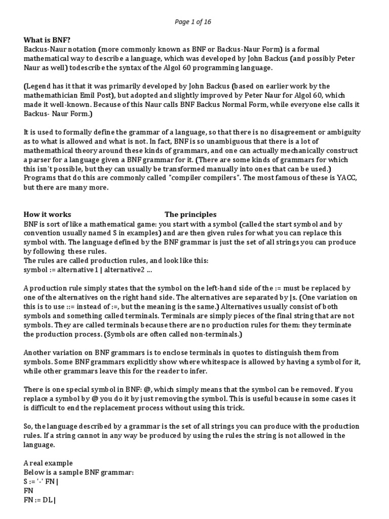 An Introduction to BNF and EBNF: Precisely Specifying Programming ...