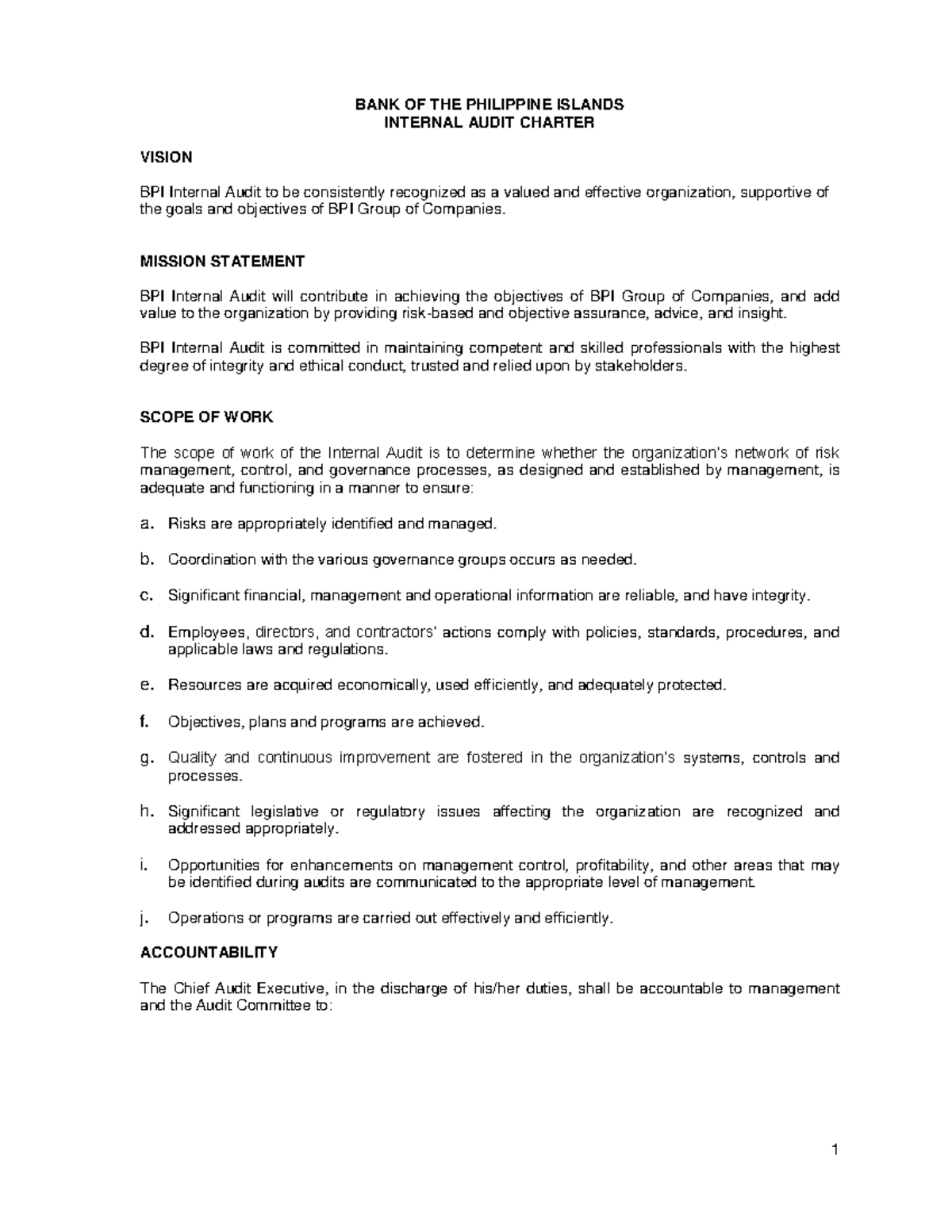 BPI Internal Audit Charter: Vision, Mission, and Scope of Work - Studocu