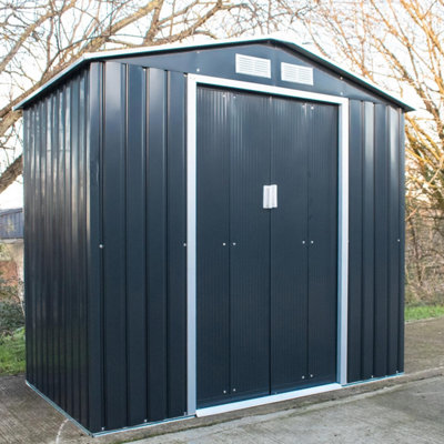 BPS Deluxe Outdoor Apex Steel Garden Shed 7 x 6ft Grey - Easy Assembly ...