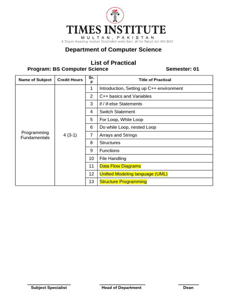 COURSE_OUTLINE_BS_Computer_Science | PDF | Computer Program | Programming