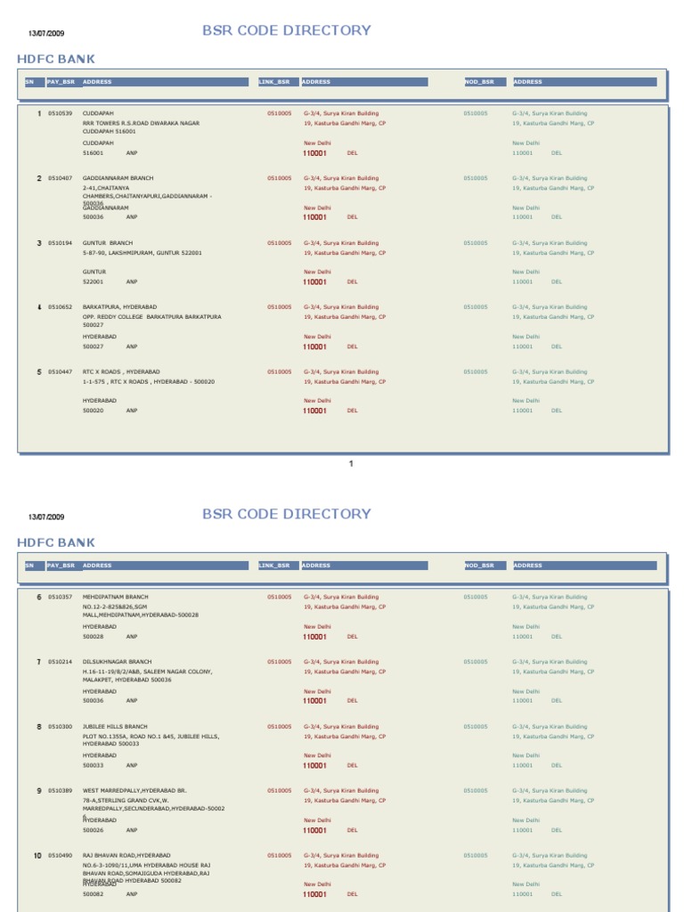 Hdfc Bank BSR Code 0510005 New Delhi Branch New Delhi