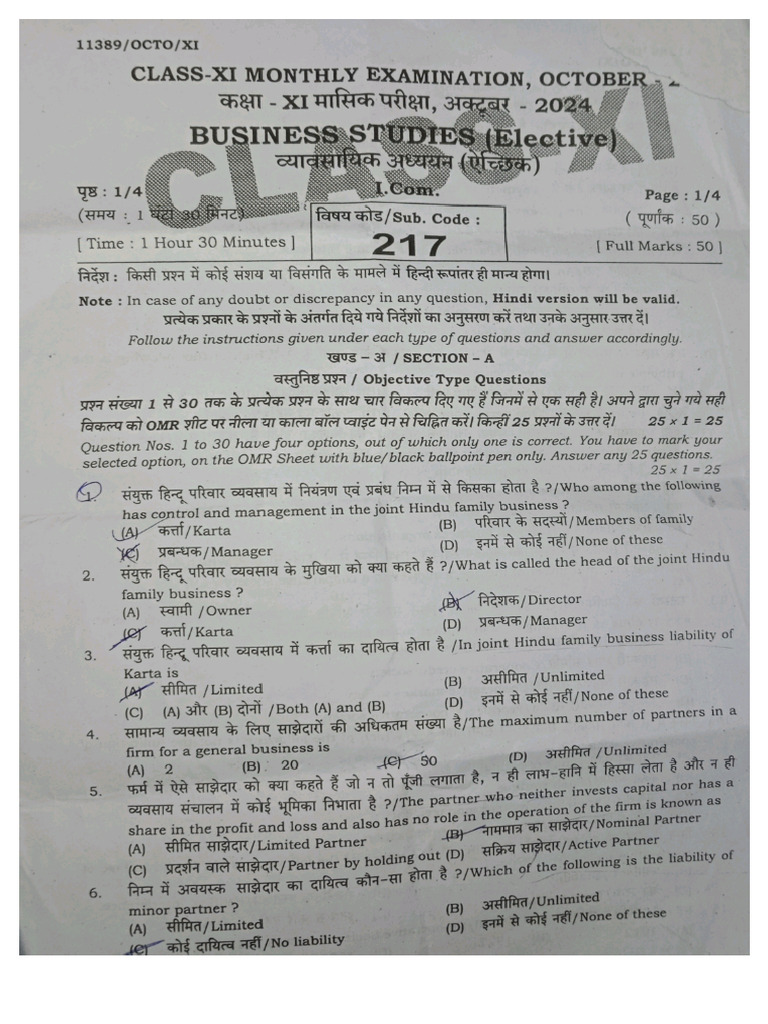 BST Question Paper Class 11th | PDF