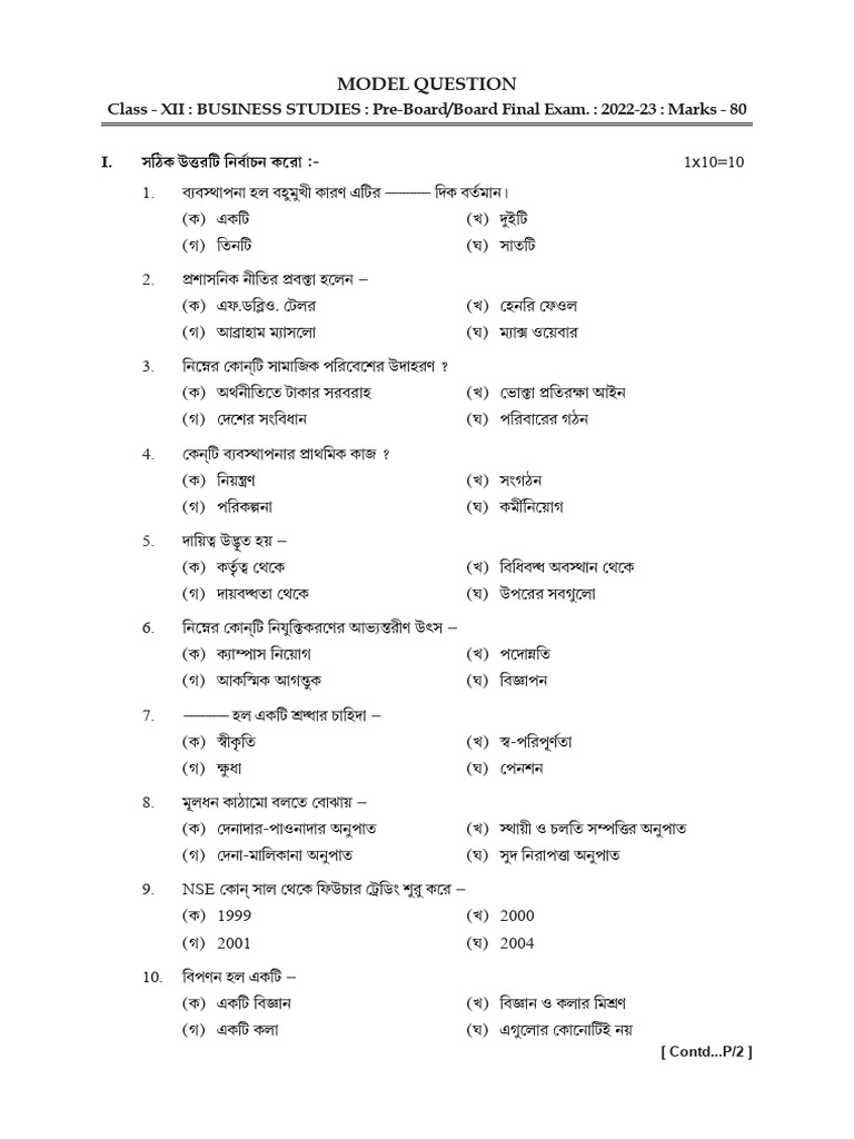 Class 12 BST Question Paper | PDF