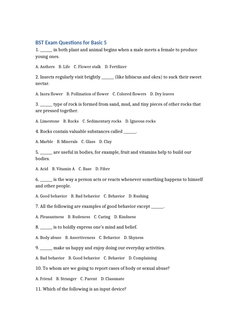 BST Exam Questions Basic5 | PDF