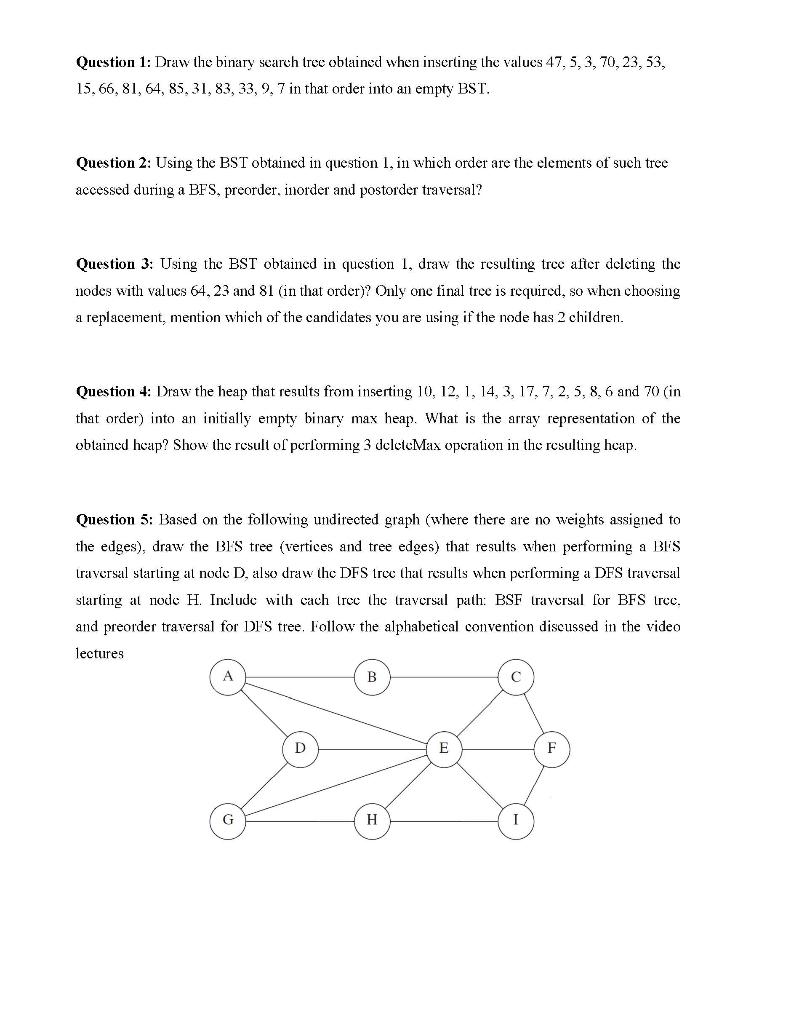 BST and Graph Questions - Sample of Short Binary Search Tree Questions ...