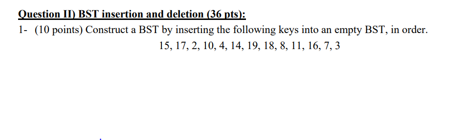 Solved Question II) BST insertion and deletion ( 36pts): 1- | Chegg.com
