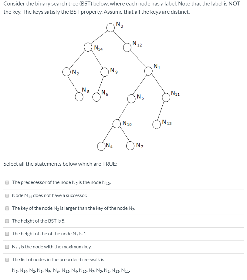 The following binary search tree (BST) operations can | Chegg.com