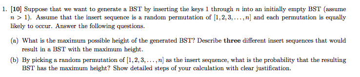 Solved 1. [10 Suppose that we want to generate a BST by | Chegg.com