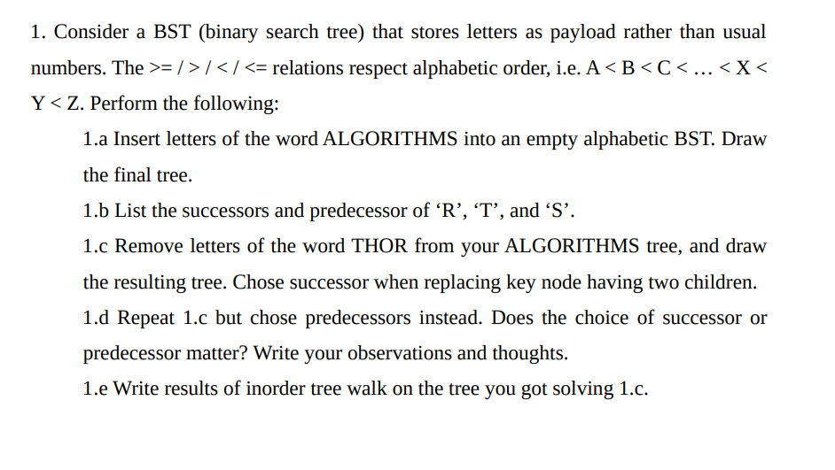 Solved BST problems For each of the following problems, | Chegg.com
