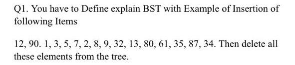 Solved Q1. You have to Define explain BST with Example of | Chegg.com