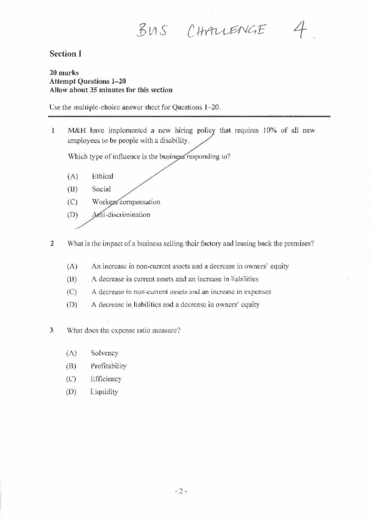 BST Challenge Paper 4: Section I Exam Questions and Answers - Studocu