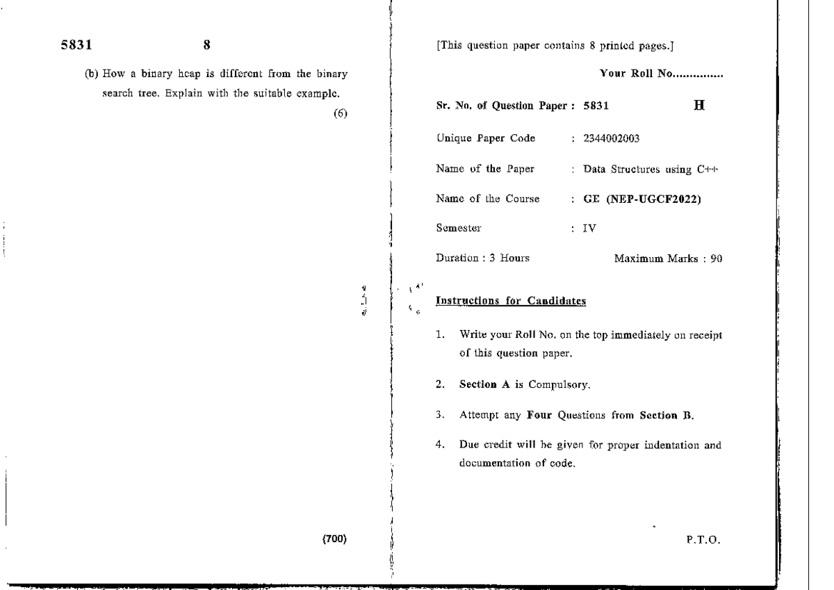 5831 Data Structures IV - Question Paper with Binary Heap & BST ...
