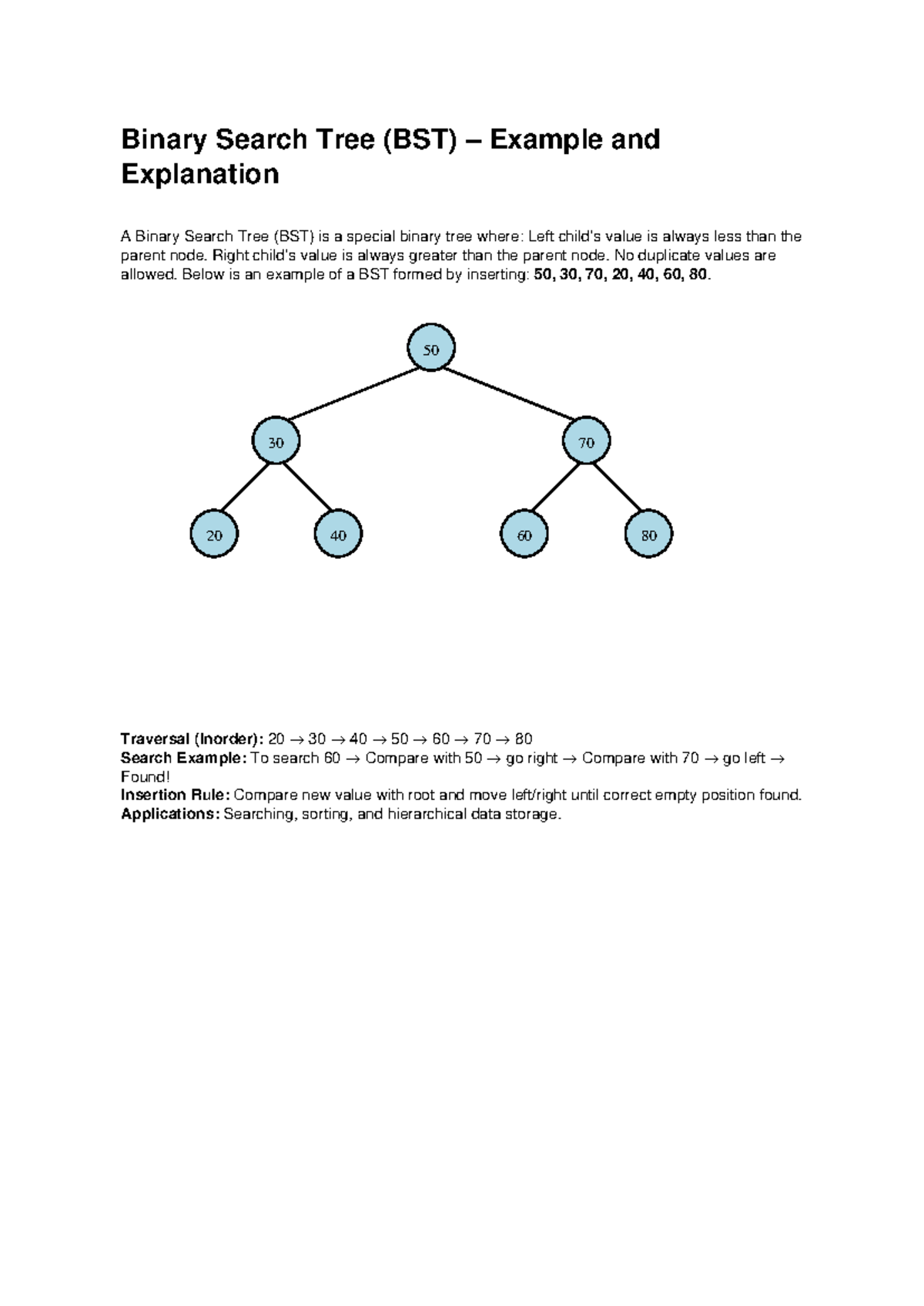 BST Example and Explanation: Structure, Insertion, and Traversal - Studocu