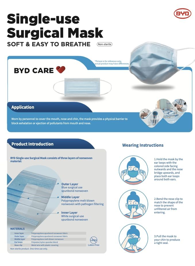 BYD face mask (single use) 50pcs/box (while stock last), Health ...