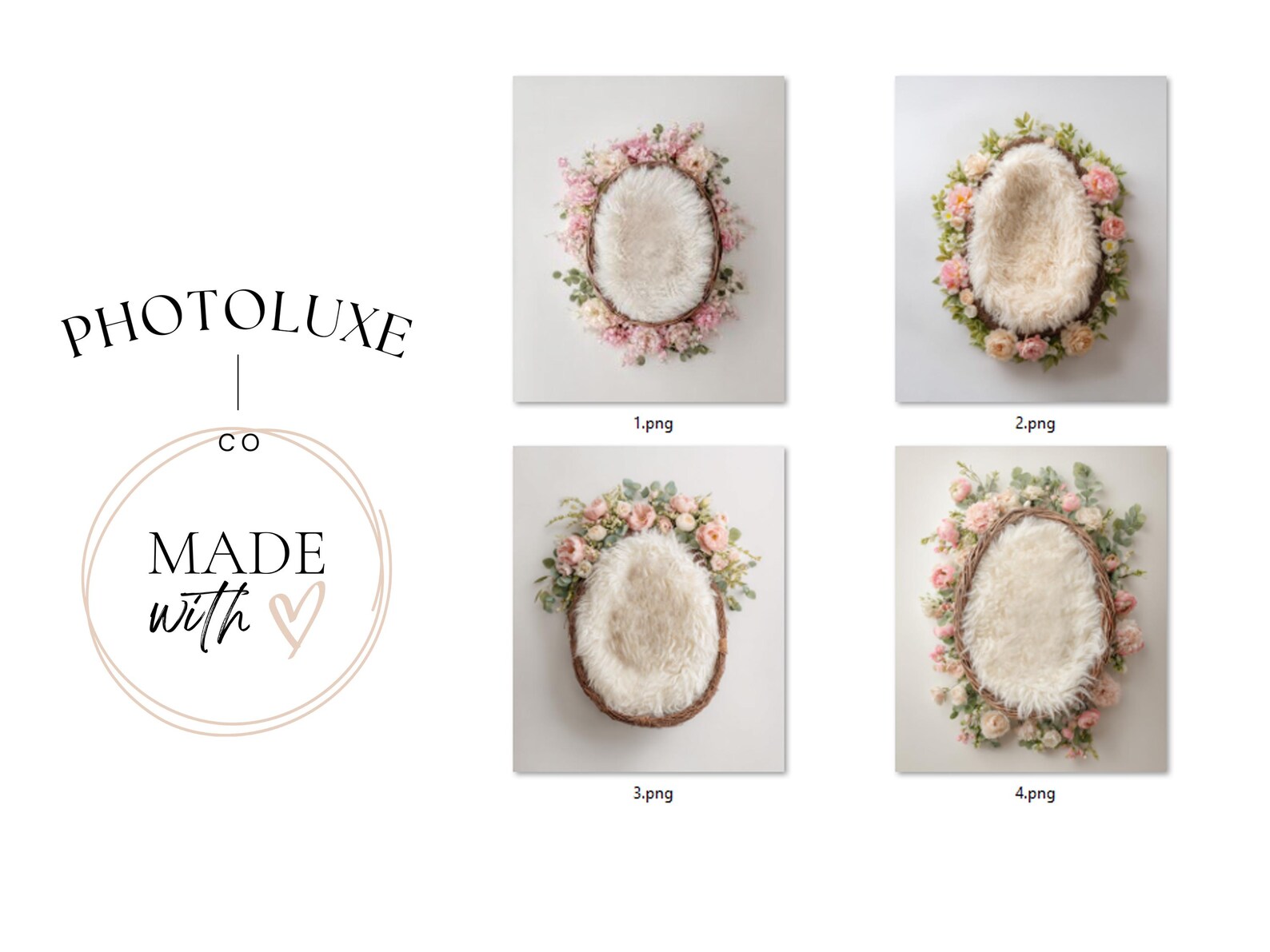 Newborn Digital Photography Backdrop, Baby Bed, Wreath & Basket, Bundle ...