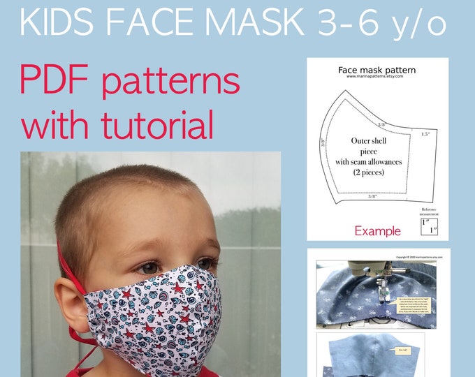 Kids Face Mask Sewing Pattern PDF & Tutorial - Washable Reusable Easy