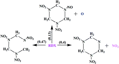 Initial decomposition reaction pathways of heated RDX. | Download ...