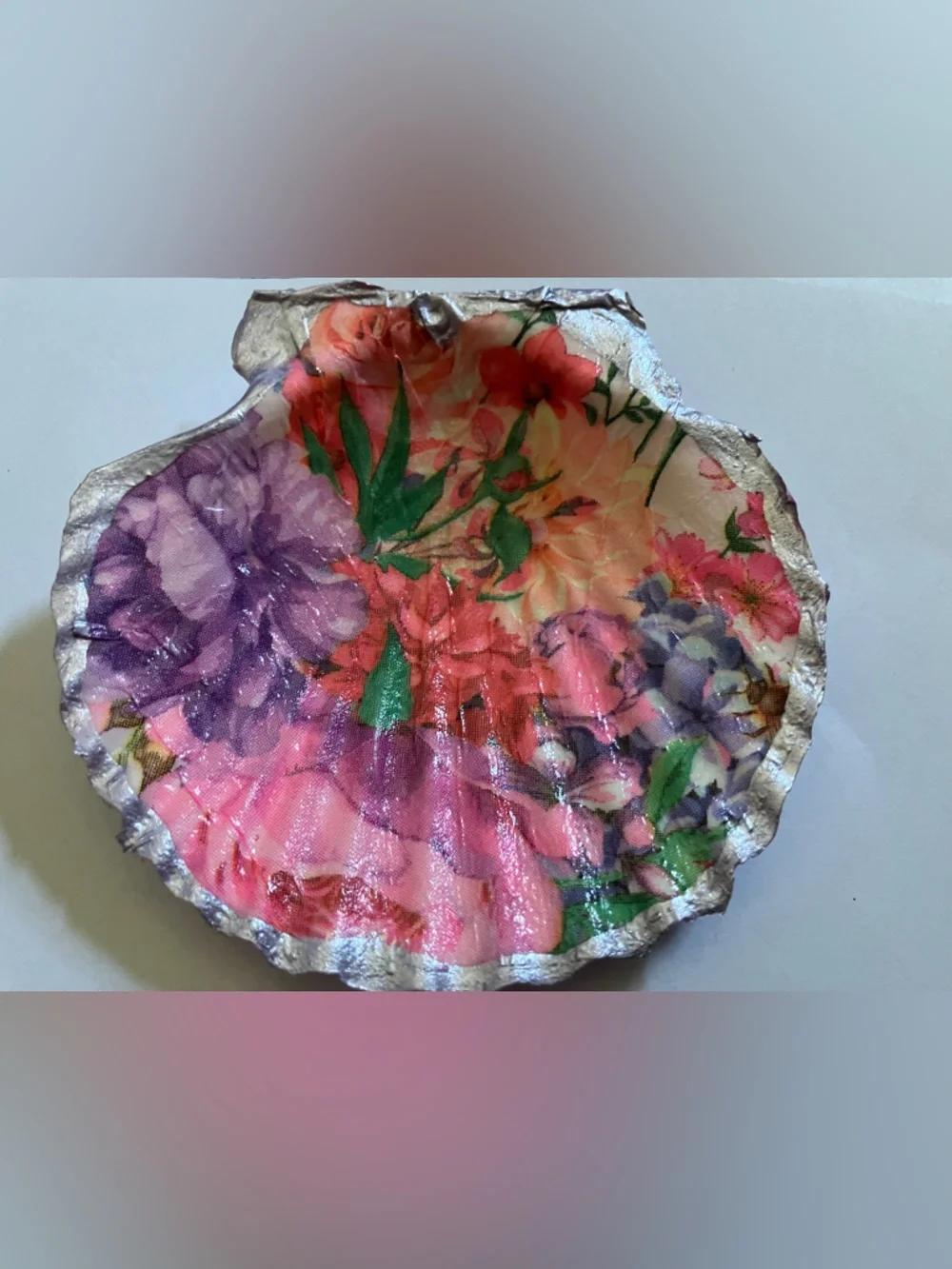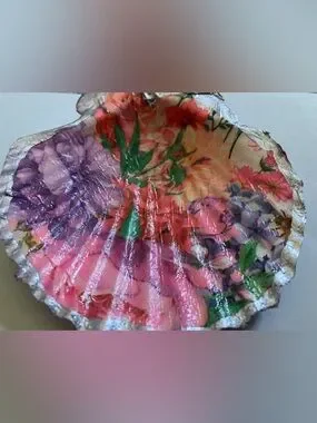 Art | Handcrafted Floral Purple Shell Dish Decoupage 45inch | Poshmark