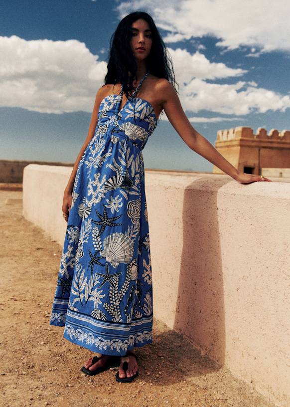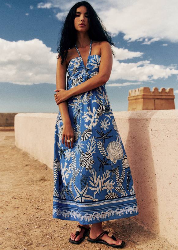 AZENOR Dress - Sézane x Inoui Editions - Blue Shells Print - Linen - Sézane