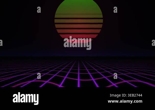 Retro Wave Synthwave Background Loop with Grid and Sun Stock Video ...