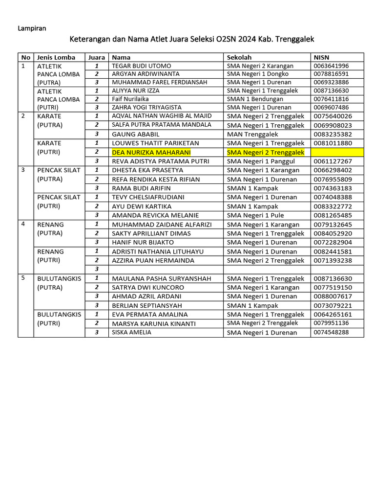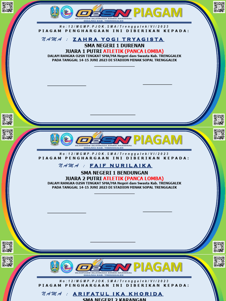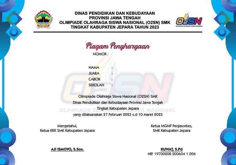 O2SN SMK Jepara 2023: Piagam Penghargaan | PDF