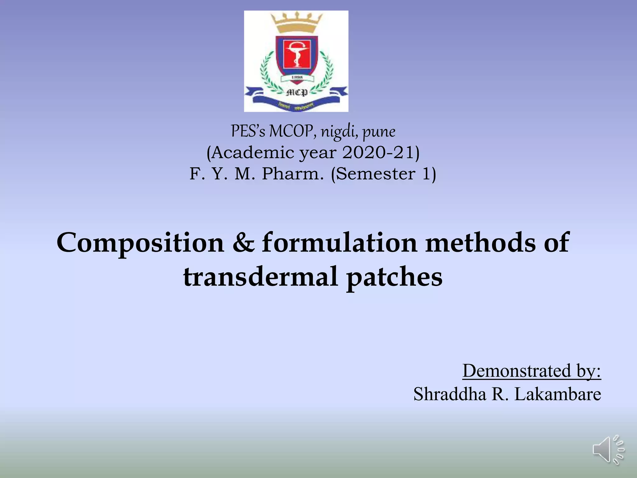 formulation of transdermal patches | PPTX