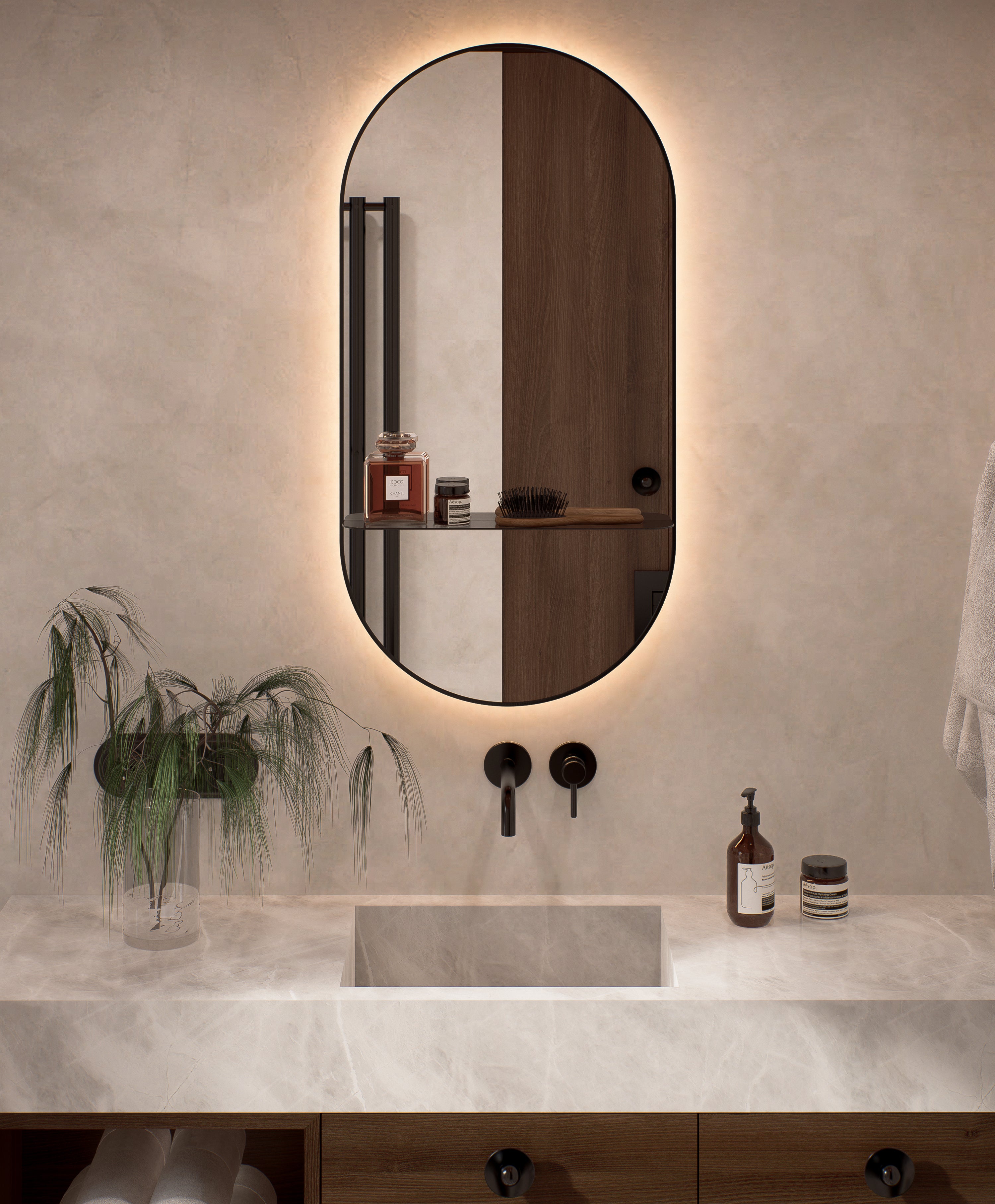 OVAL SHELF BACKLIGHT LINE miroir dans le cadre avec étagère en ...