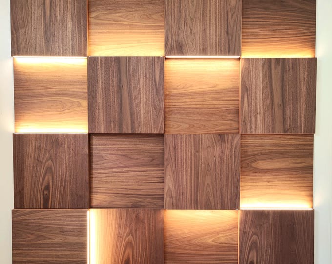 Exclusive 3D Walnut Wood Wall Panels With Backlight – Wood Paneling ...