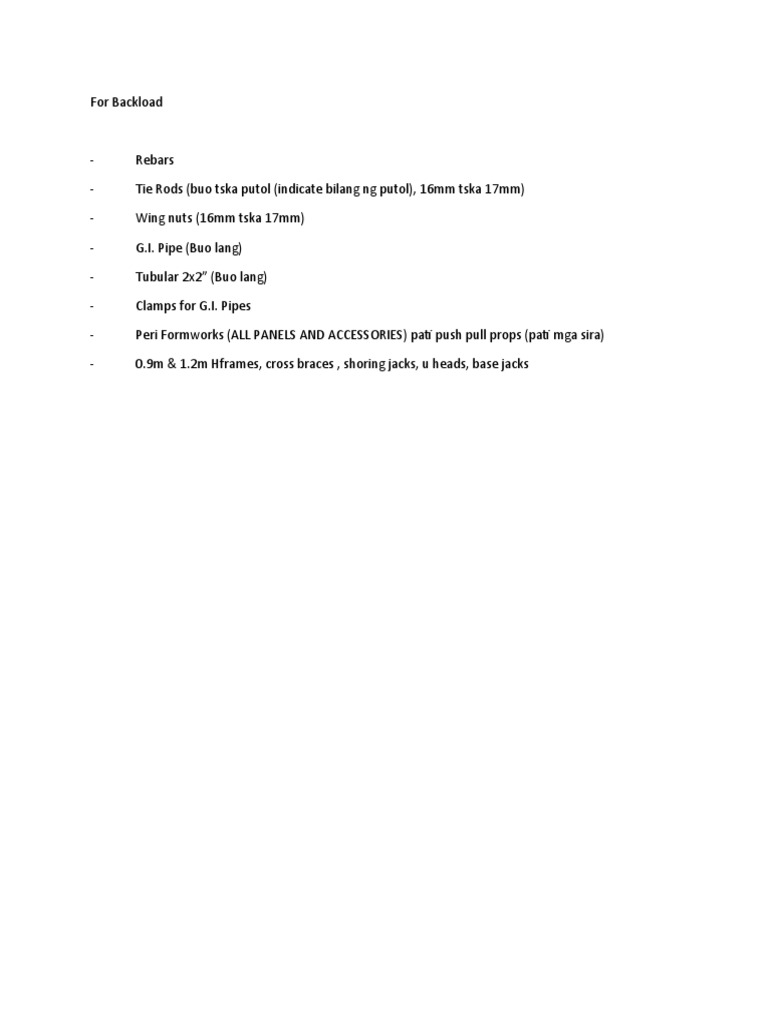 Construction Materials Backload List | PDF
