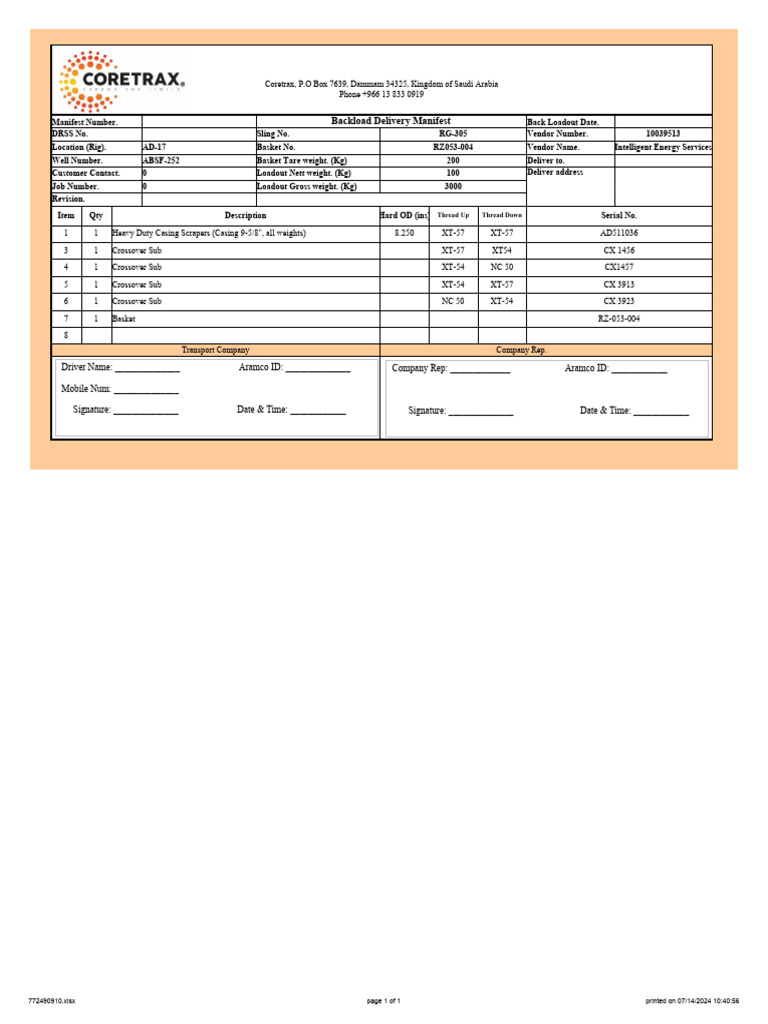 Backload Delivery Manifest for Rig AD-17 | PDF
