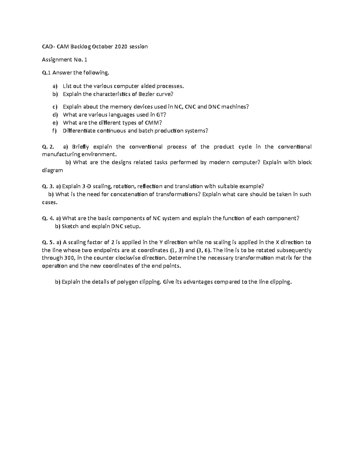 CAD CAM backlog assignment 1 - CAD- CAM Backlog October 2020 session ...