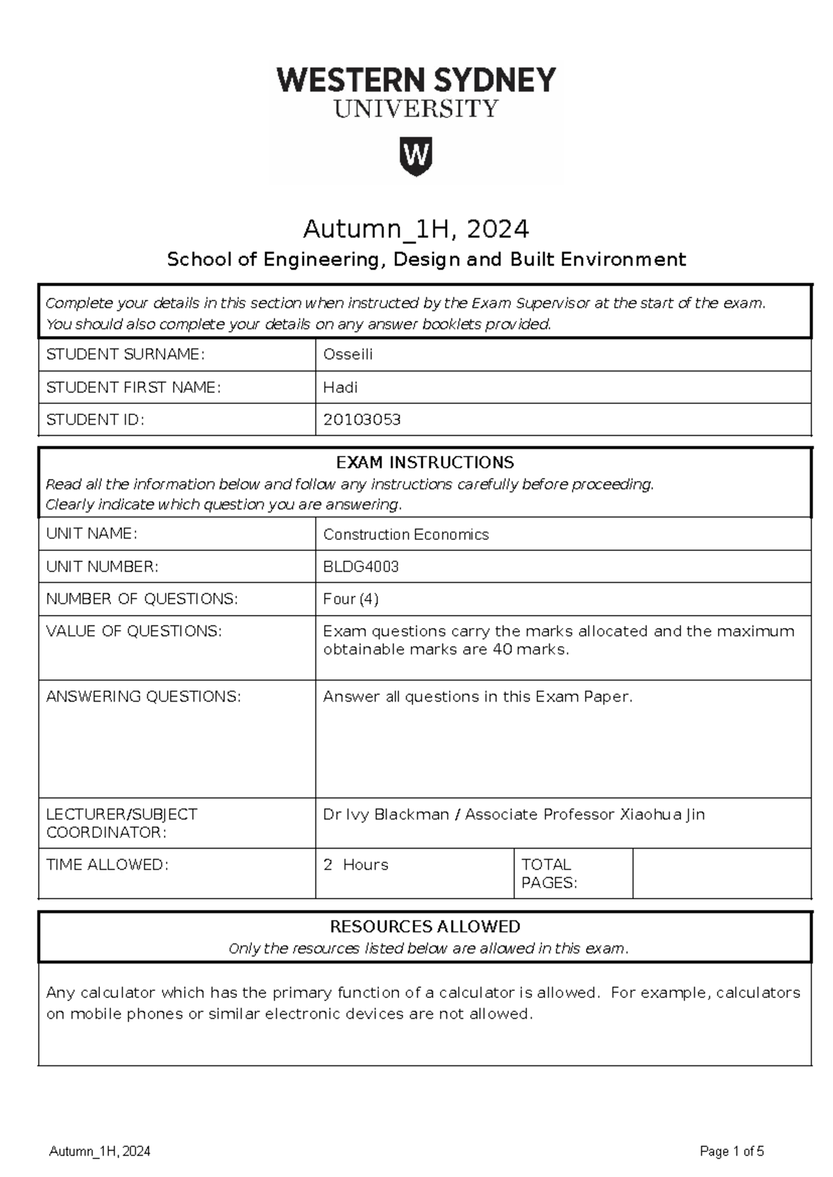 Exam Paper - Autumn 2024 BLDG4003 - Autumn_1H, 2024 School of ...