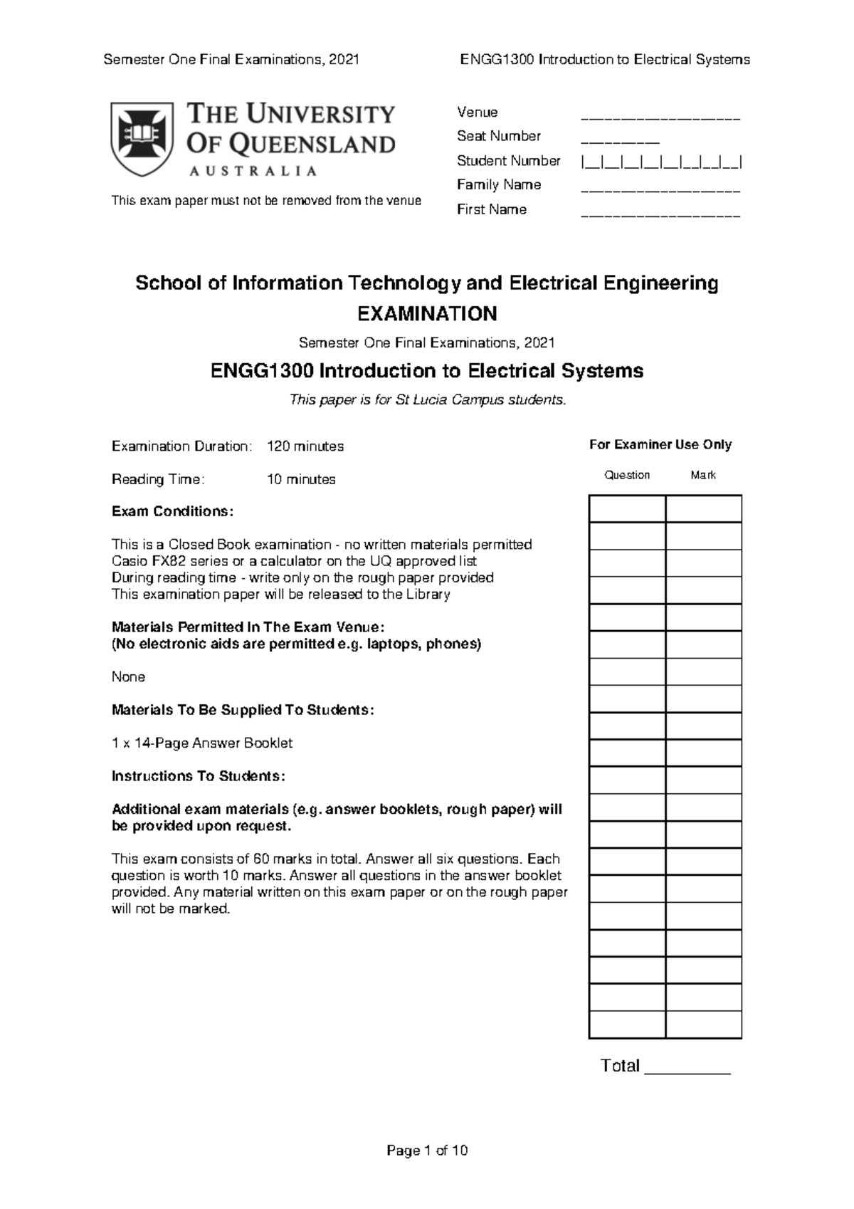 ENGG1300 Final Exam Paper Semester 1 2021 UQ - This exam paper must not ...