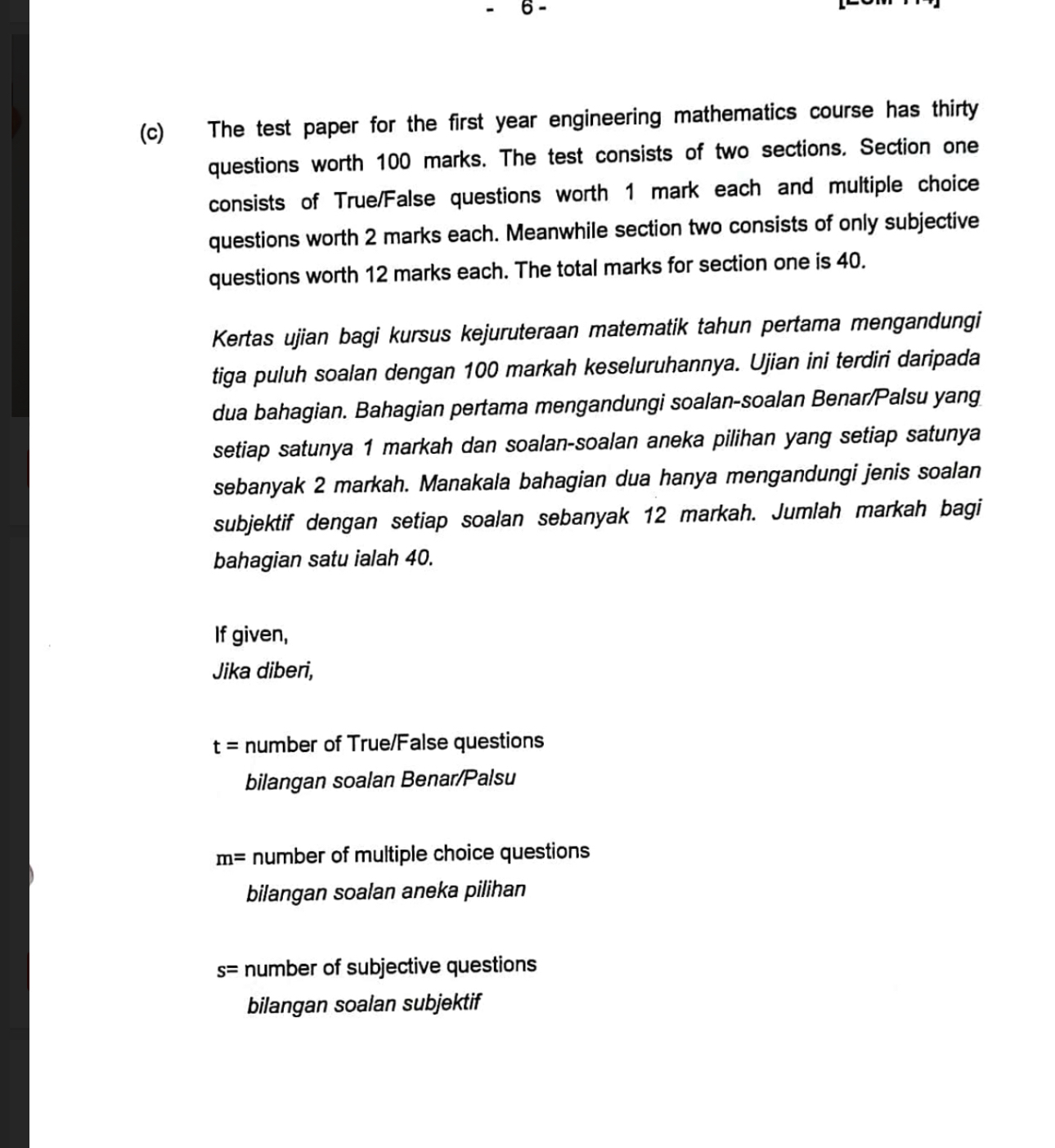 Solved (c) The test paper for the first year engineering | Chegg.com