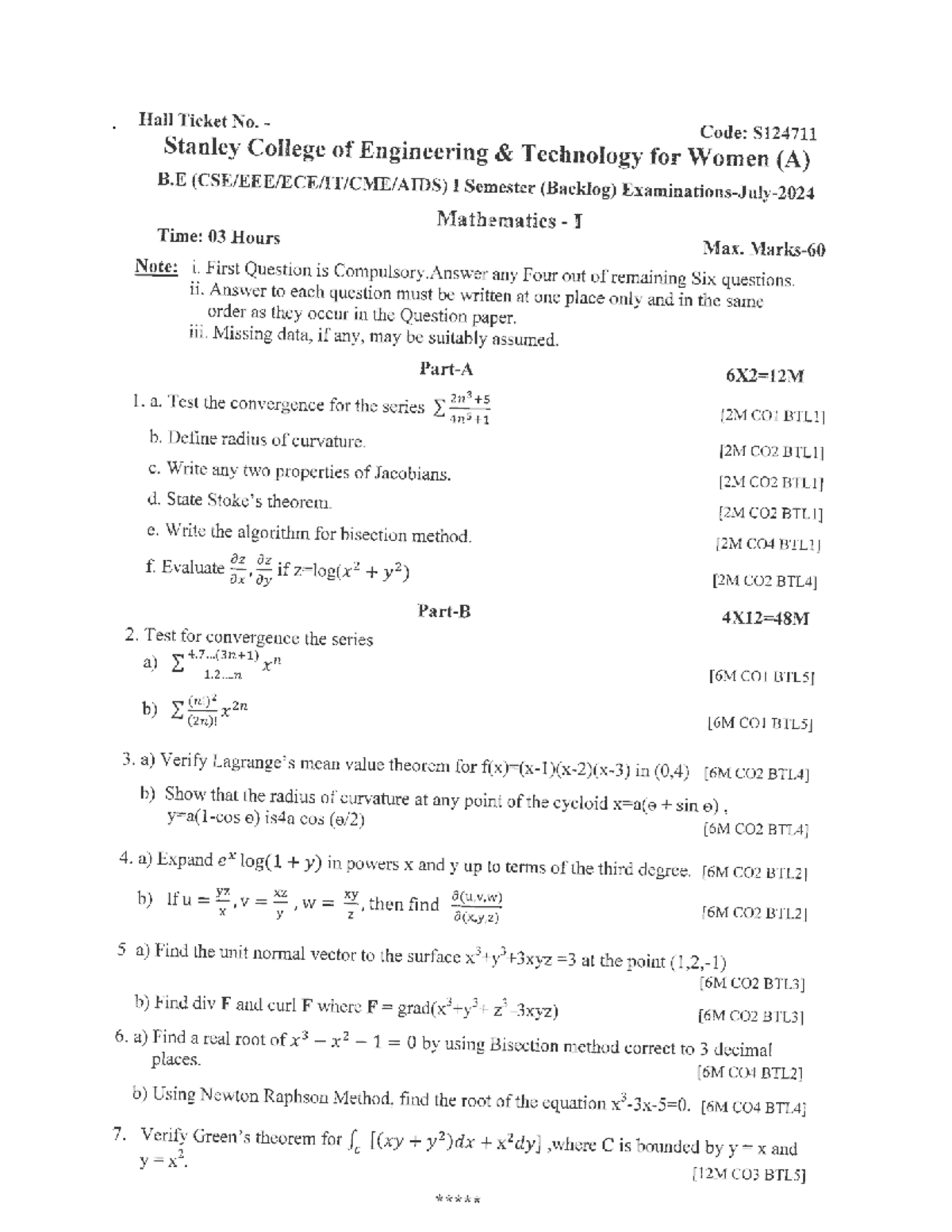 B.E I Semester (Backlog) Mathematics I - Previous Year Papers - Studocu