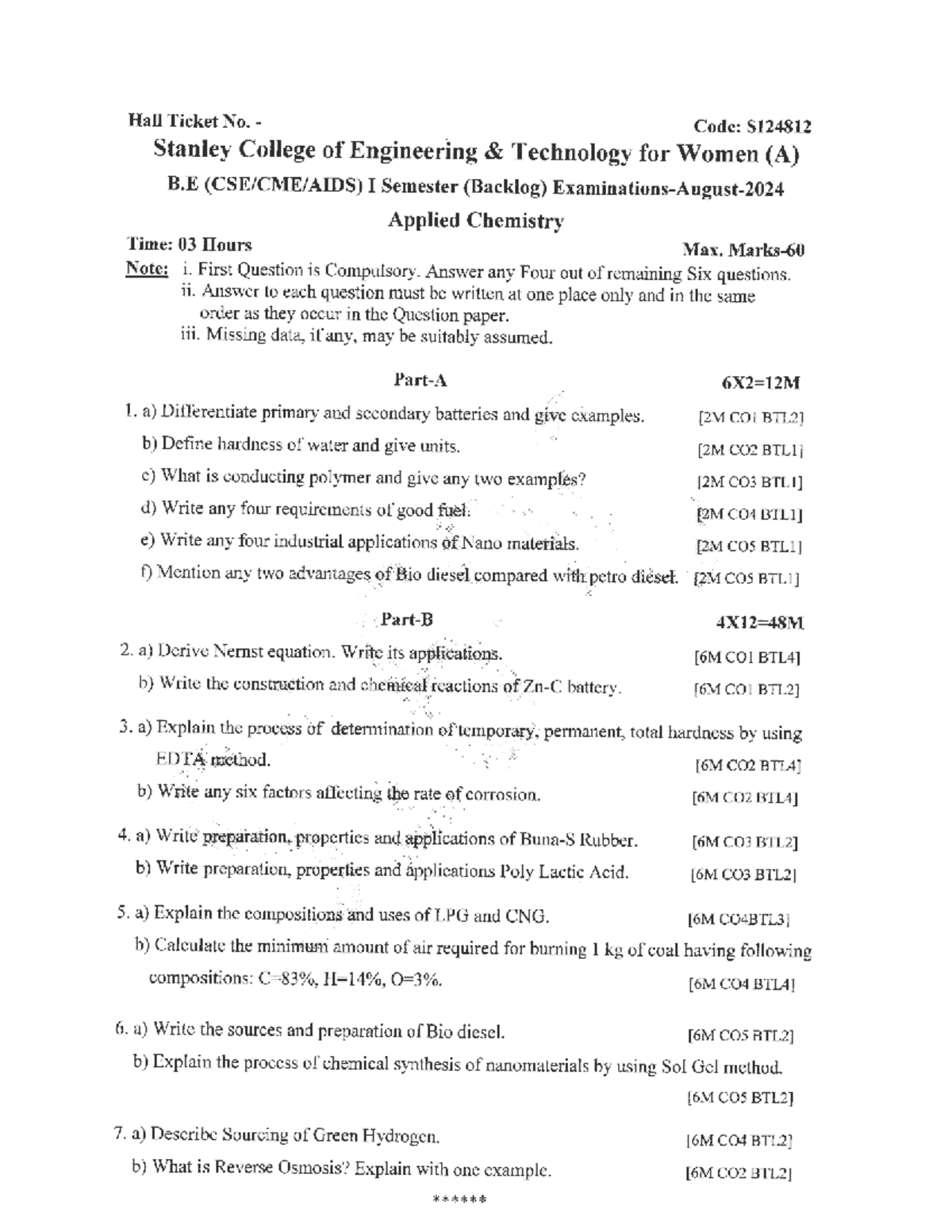 B.E II Semester (Backlog) Chemistry Previous Year Papers - Studocu