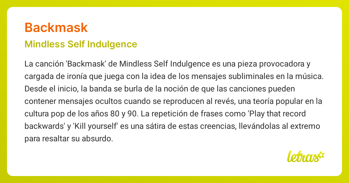Significado de la canción BACKMASK (Mindless Self Indulgence) - LETRAS.COM