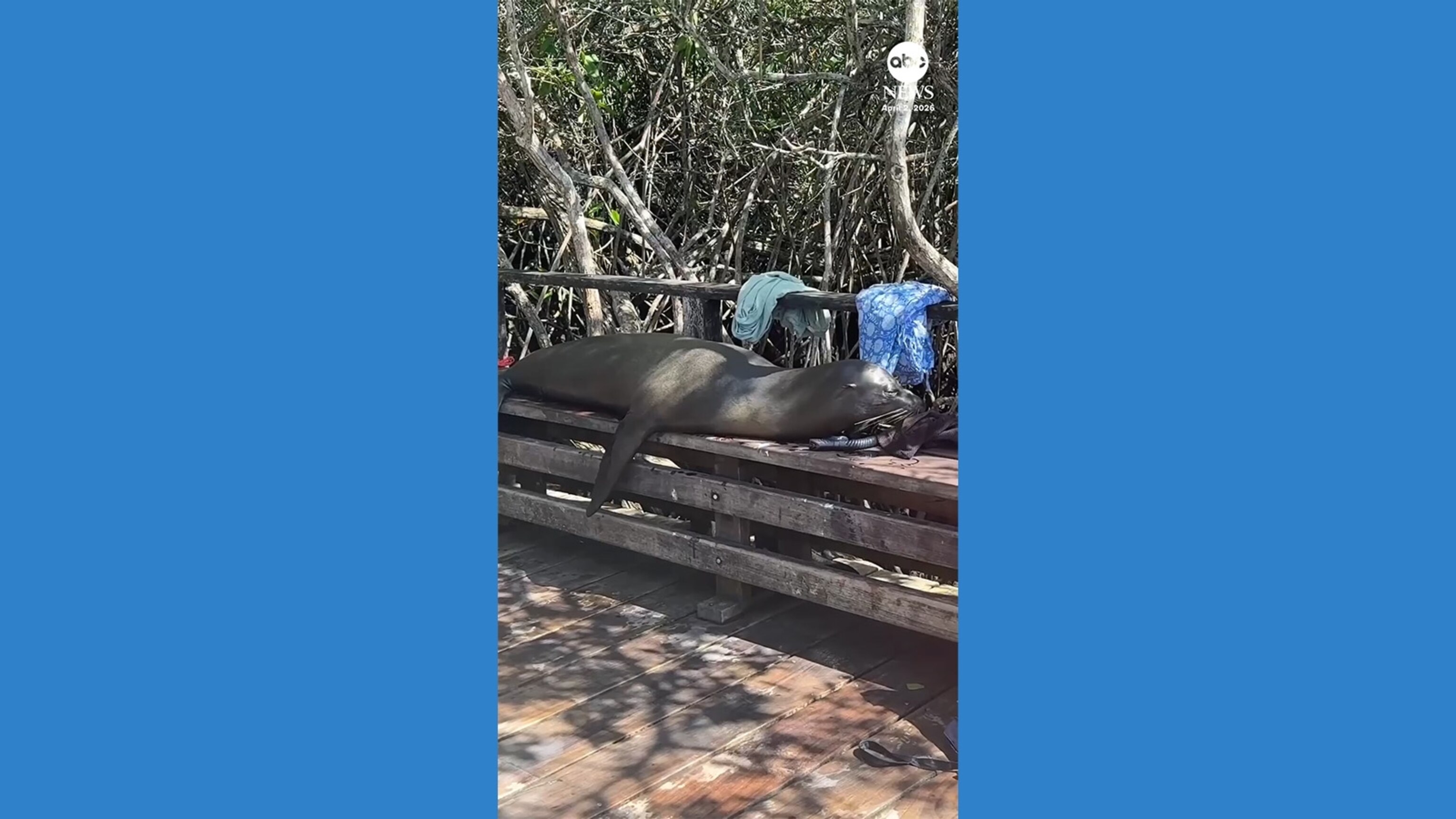 Sea lion borrows tourists’ backpacks for naptime