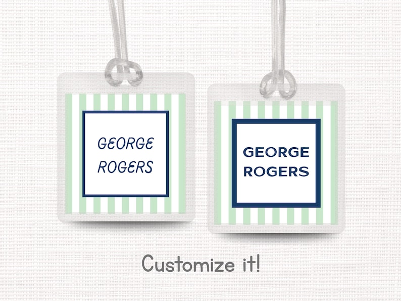 Editable Template, Green Stripe Backpack Tag, Classic Design, Kids ...
