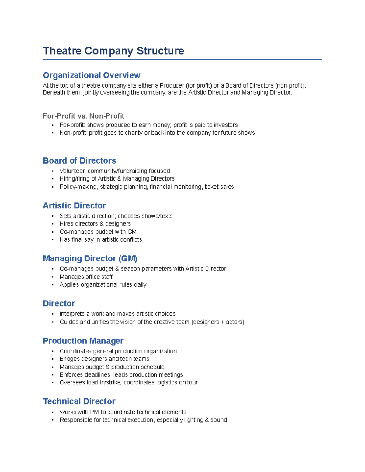 Theatre 1101: Backstage Exam Notes and Production Overview - Studocu