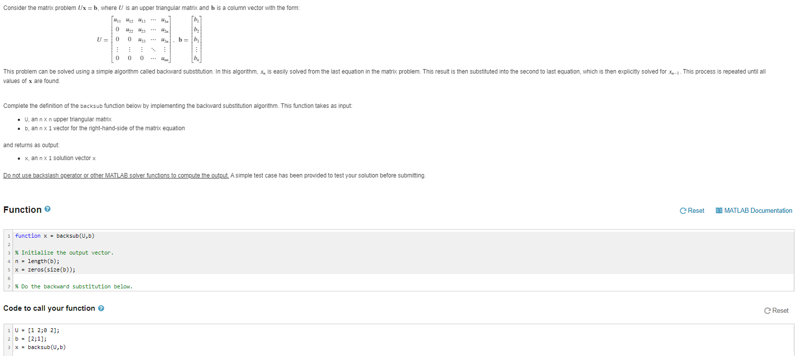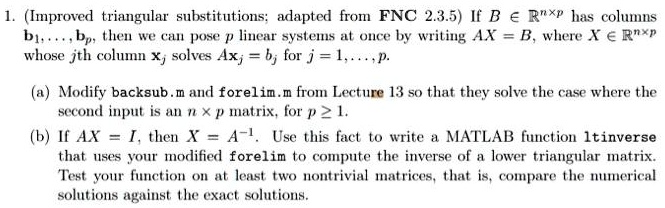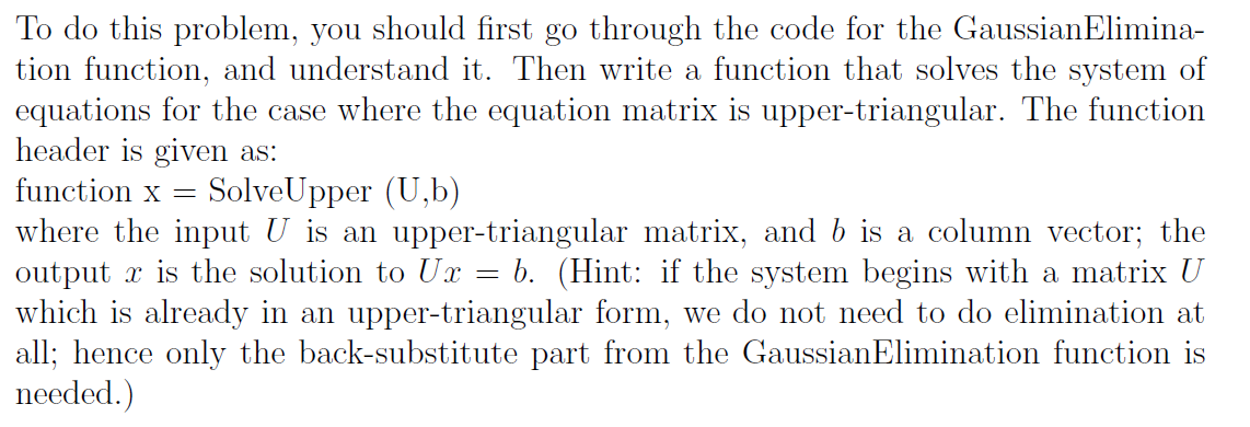 Solved Function 2.3.2 (backsub) Solve an upper triangular | Chegg.com