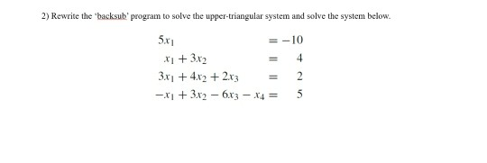 2) Rewrite the backsub program to solve the | Chegg.com