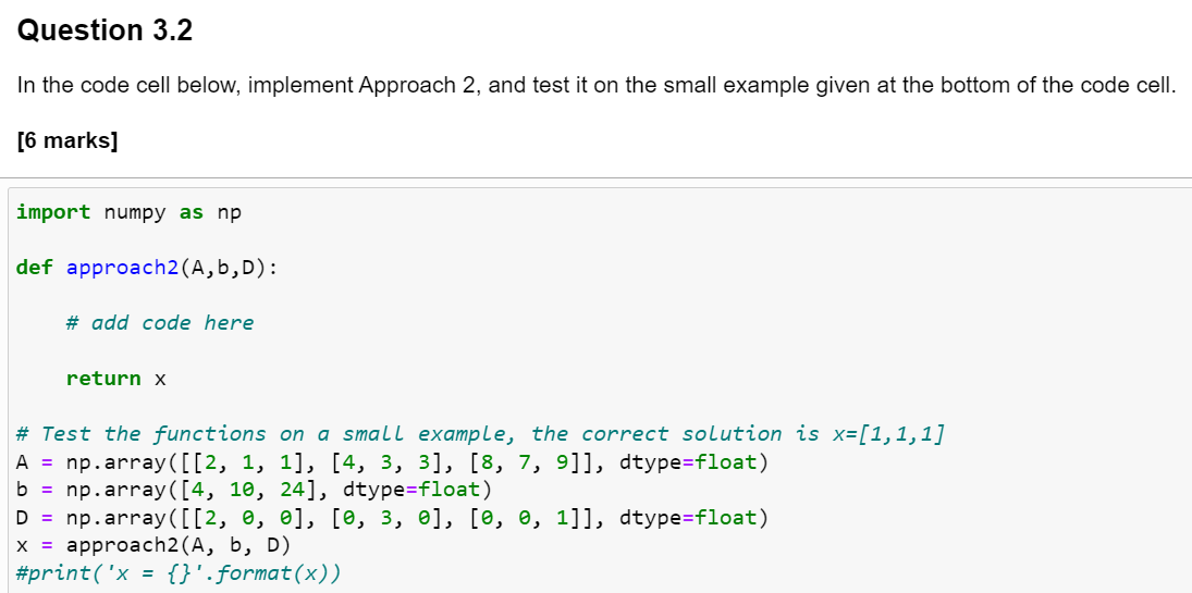 instructions write a function solve which solves a system of linear ...