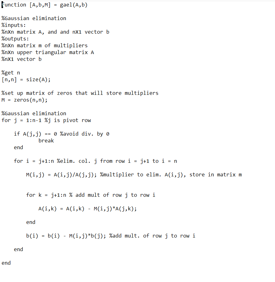 Solved Write a Matlab program to solve a linear system of | Chegg.com