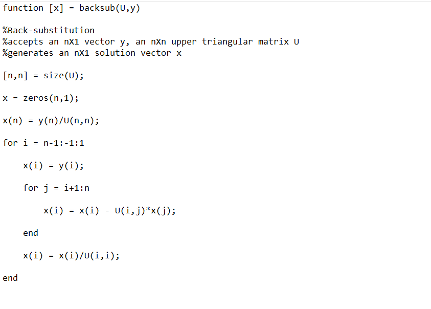 Solved Write MATLAB/Octave code for back substitution. | Chegg.com