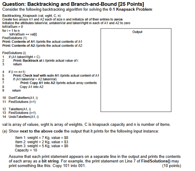 Question: Backtracking and Branch-and-Bound [25 | Chegg.com
