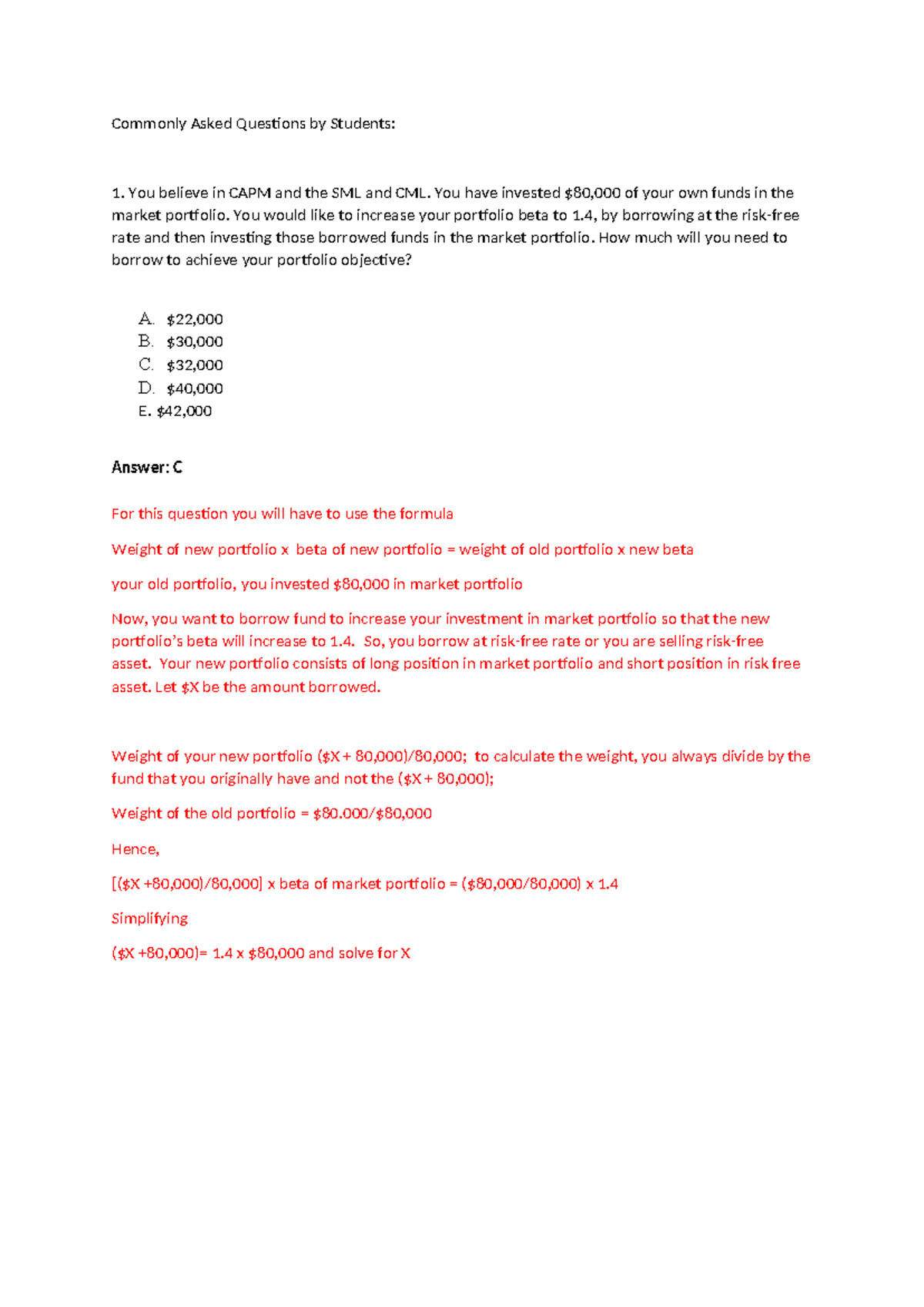 Commonly Asked Questions for FIN 2704: CAPM and Portfolio Management ...