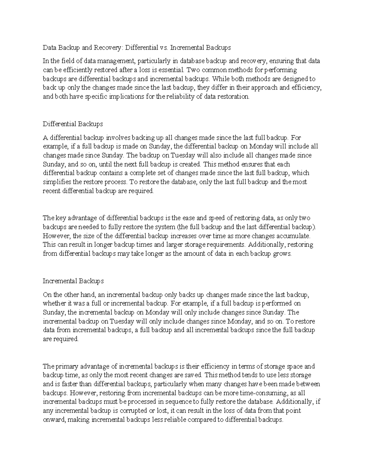 Written Assignment Unit 5 - Data Backup and Recovery: Differential vs ...