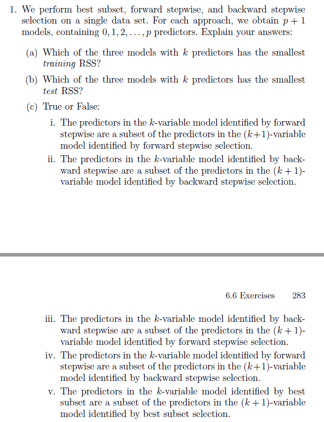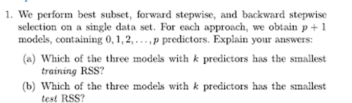 Solved 1. We perform best subset, forward stepwise, and | Chegg.com