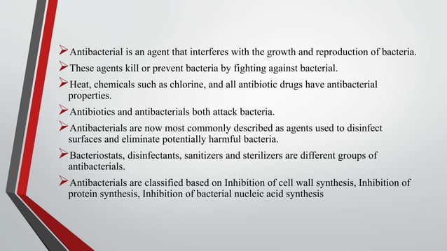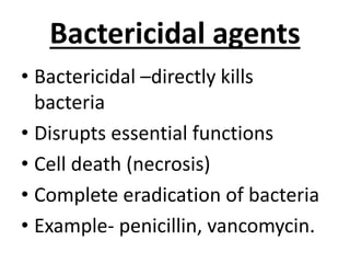Antibacterial chemicals bactericidal and bacteriostatic agents | PPTX ...